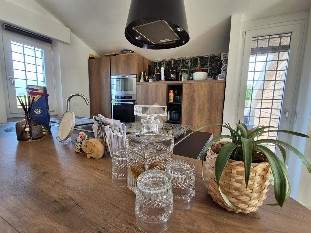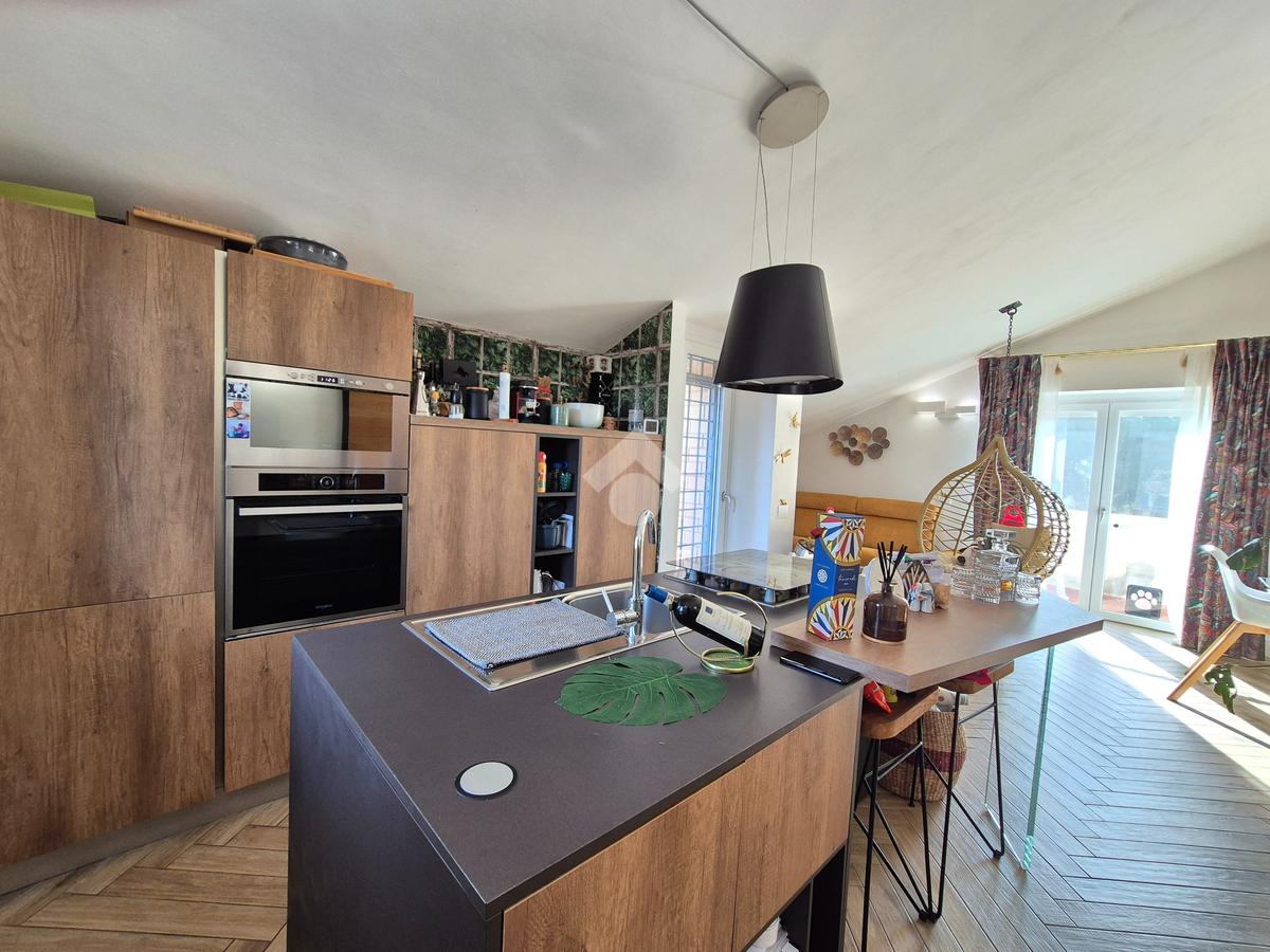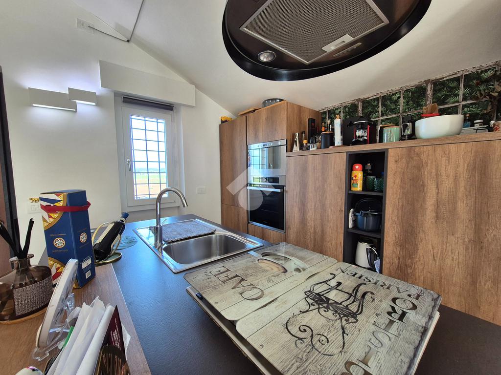 Tarquinia Lido: In posizione tranquilla all'interno di una piccola palazzina esternamente rivestita in cortina per preservarla dall'usura del tempo, disponiamo di un grazioso appartamento all'ultimo piano con terrazzo panoramico abitabile completamente ristrutturato da pochi anni. Gli ampi giardini condominiali a disposizione conducono alla scalinata che porta all'ingresso della casa. Ci accoglie un luminoso soggiorno con zona pranzo e area salotto open space sulla modernissima cucina con penisola e con doppia uscita sulla terrazza, dove si potrà trascorrere piacevoli momenti di relax all'aria aperta rilassandosi con la vista verso le campagne circostanti e Tarquinia, e sul balcone. Il disimpegno conduce alla zona notte composta da una camera da letto matrimoniale con uscita sul balcone, due camerette di cui una adibita totalmente a cabina armadio e un piacevole bagno con doccia. Gli ambienti sono climatizzati per garantire il massimo comfort in ogni stagione, e una stufa a pellet aggiunge un tocco di calore e atmosfera alla zona giorno. Due balconi e una terrazza panoramica offrono spazi esterni perfetti per godere della vista e del clima mite della zona. La disposizione interna è studiata per ottimizzare gli spazi, rendendo l'appartamento funzionale e accogliente. La ristrutturazione recentemente effettuata ha riguardato totalmente l'immobile dai pavimenti e rivestimenti in stile moderno, agli infissi in pvc con vetro isolante, zanzariere e dove ritenute necessarie inferriate, porta blindata, stufa a pellet con canalizzazione del calore verso la zona notte e climatizzatori in tutte le stanze della casa. Una soluzione ideale per chi desidera vivere in un contesto tranquillo senza rinunciare ai comfort moderni.