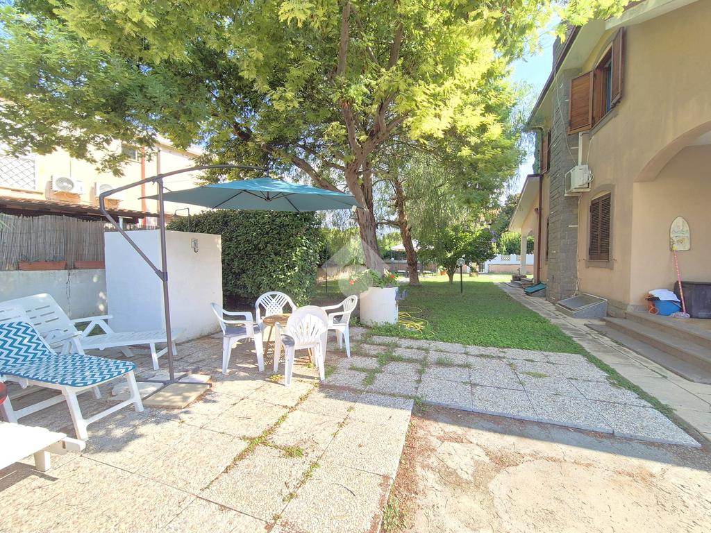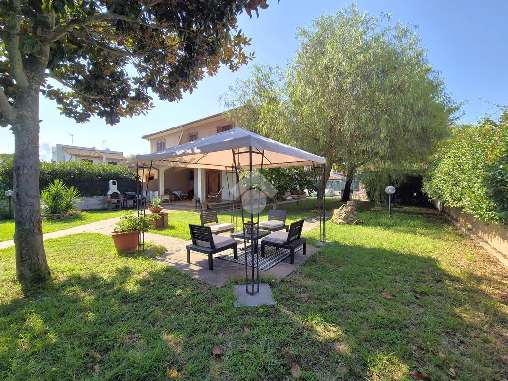 All'interno del consorzio residenziale privato di Marina Velca Golf, immerso nel verde e distante 1,5 km dal mare, proponiamo in vendita una porzione di villa bifamiliare situata in posizione comodissima per raggiungere a piedi in pochi minuti la piazzetta con i suoi servizi, il campo da golf, il resort e la piscina. La villa ha a disposizione un favoloso giardino di 350 mq con diversi alberi ornamentali, una zona relax nel verde ed una parte pavimentata per poter parcheggiare internamente più auto. Infatti dispone di doppio accesso da due differenti vie, uno pedonale e l'altro carrabile. Un bel portico frontale ci accoglie all'ingresso, ideale per mangiare fuori, mentre internamente il piano terra è tutto dedicato alla zona giorno e comprende un salone con camino, un comodo cucinotto con uscita sul portico laterale ed un bagno a servizio. Una comoda scala conduce alla zona notte composta da due camere matrimoniali, di cui una dotata di balcone con vista panoramica sul verde, una ampia cabina armadio, un bagno con vasca e un ripostiglio sottotetto. La villa al piano seminterrato dispone di una spaziosa cantina, dotata di più ambienti, accessibile sia da una scala a chiocciola interna che dall'esterno. La soluzione si trova in buono stato di manutenzione ed è termoautonoma, viste le caratteristiche risulta adatta anche per viverci tutto l'anno.