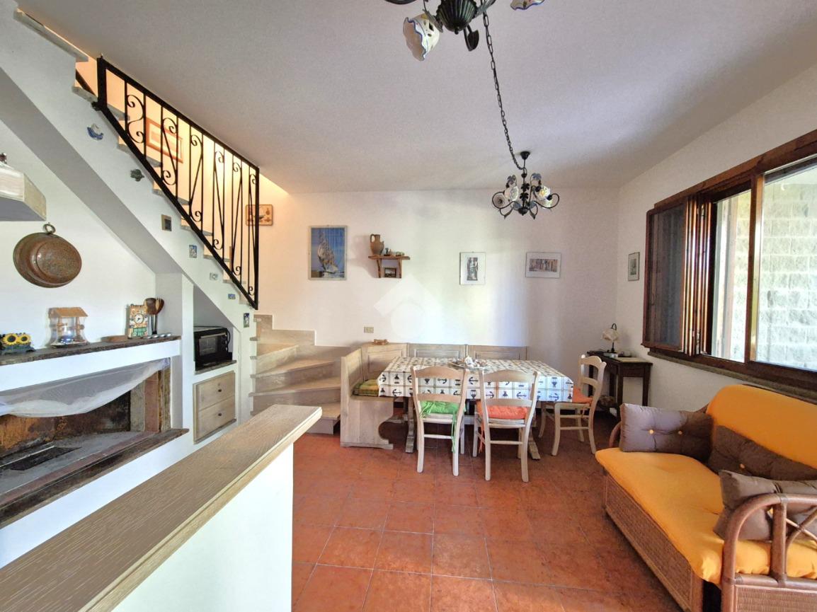 All'interno del consorzio residenziale privato di Marina Velca Mare, proponiamo in vendita una porzione di villa quadrifamiliare in ottima posizione a due passi dal mare e dalle attività commerciali. Esternamente rivestita in pietra che preserva notevolmente la casa dall'usura del tempo e dalla salsedine. L'immobile si articola su due livelli, ha la comodità di un posto auto privato di 13 mq a pochi metri dal vialetto che conduce sia all'ingresso di casa che alla spiaggia. Il giardino della villa, di 240 mq, si estende per due lati e fa da cornice ad uno spazioso portico d'entrata, dove mangiare e rilassarsi all'aperto. Il piano terra si compone di un grazioso soggiorno con camino ed angolo cottura, una comoda cameretta ed un bagno a servizio. Il primo piano ospita le due spaziose camere matrimoniali, di cui una dotata di uscita sul balcone con vista mare, ed un bagno con doccia. La villa si trova in buono stato di manutenzione, vista la posizione è ideale per trascorrere le vacanze al mare.