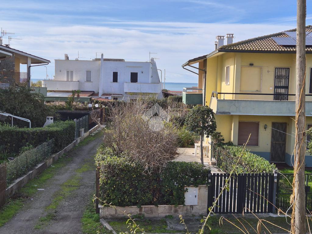 Tarquinia Lido: A soli 50 metri dal mare, in zona tranquilla e ben servita, si trova una villa a schiera centrale in vendita, perfetta per chi cerca una residenza comoda e funzionale a due passi dal mare. La casa si sviluppa su più livelli e offre spazi ben distribuiti. Al piano terra, un accogliente e luminoso soggiorno con angolo cottura si apre su un giardino pavimentato, ideale per momenti di relax, attrezzato con tende da sole e area per cucinare all'aria aperta. Completa il piano un bagno di servizio. Al piano superiore, due camere da letto luminose, entrambe con uscita sui balconi vista mare, garantiscono comfort e tranquillità e un piacevole risveglio godendosi il panorama. Il corridoio che le unisce presenta un comodo armadio a muro e conduce all'ampio bagno con doccia. La villa è climatizzata, assicurando un ambiente piacevole in ogni stagione. L'abitazione è in buono stato, parziamente ristrutturata e rappresenta un'opportunità unica per chi desidera vivere a pochi passi dalla spiaggia.