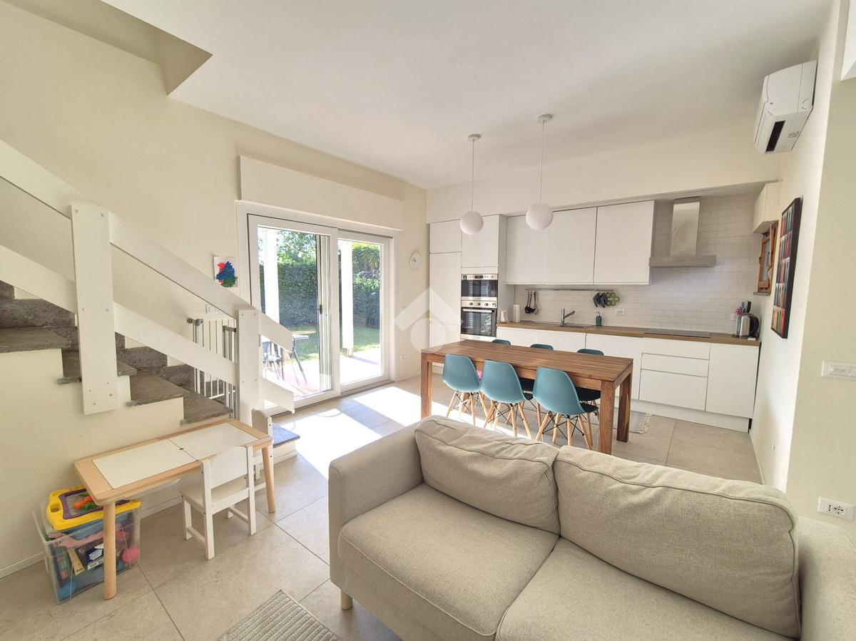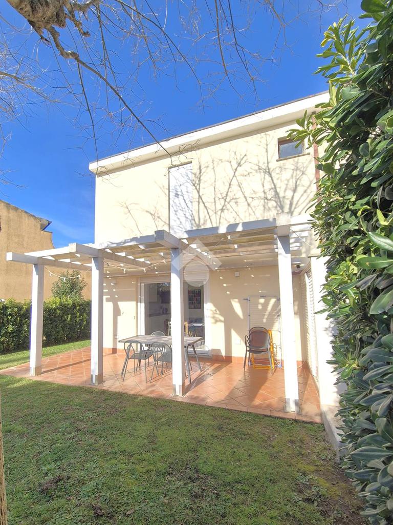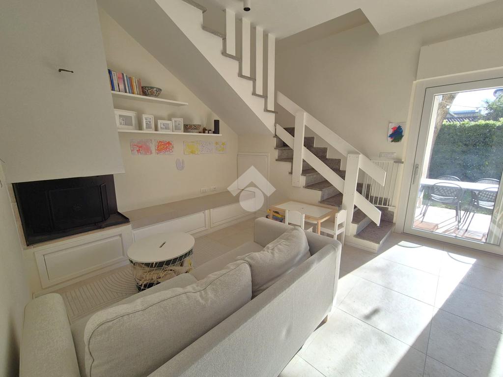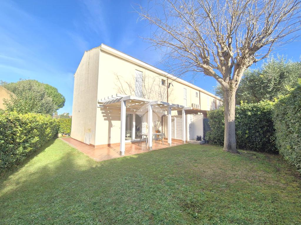 All'interno del consorzio residenziale privato di Marina Velca Golf, immerso nel verde e distante 1,5 km dal mare, proponiamo in vendita villa a schiera angolare completamente ristrutturata nel 2022, situata in posizione ottimale per raggiungere il centro del consorzio in soli 5 minuti a piedi. La villa si sviluppa su due livelli ed il giardino di 100 mq gira intorno ai 3 lati liberi. Il piano terra ospita il grazioso open space con moderna cucina a vista, zona pranzo e zona relax con camino. Un'ampia vetrata a scorrimento conduce direttamente alla veranda esterna, ideale per pranzi all'aperto e momenti rilassanti nel giardino privato. Completa il piano terra un bagno completo di doccia. La zona notte del primo piano comprende due spaziose camere matrimoniali con ampie finestre con vista sul verde circostante, ed un bagno completo di vasca. La villa è climatizzata, nel soggiorno e nelle camere, mentre nei bagni sono presenti due elementi di termo arredo elettrico. E' stata ristrutturata da pochissimo tempo, viene venduta parzialmente ammobiliata ed è pronta per essere abitata da subito sia come prima casa che come casa vacanza.